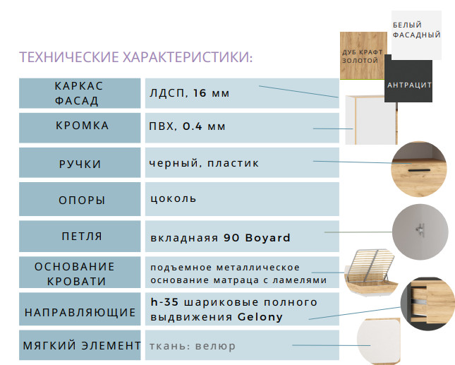 - Механизм подъема кровати: Летто VF Via Ferrata серый