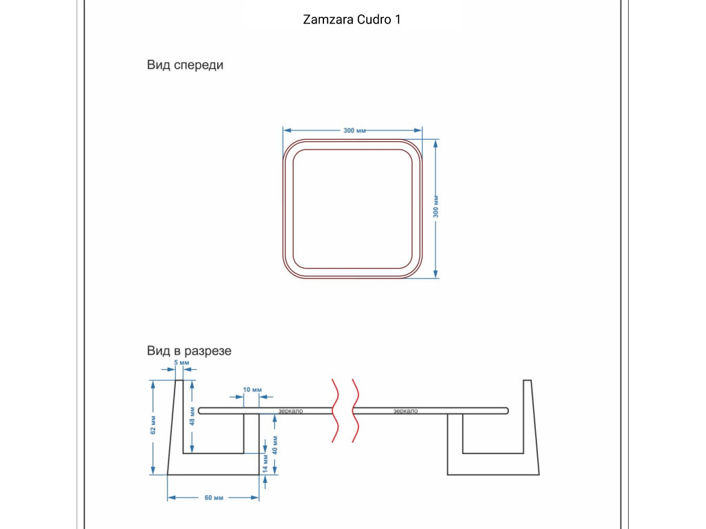 Размер зеркала: 256мм*256мм