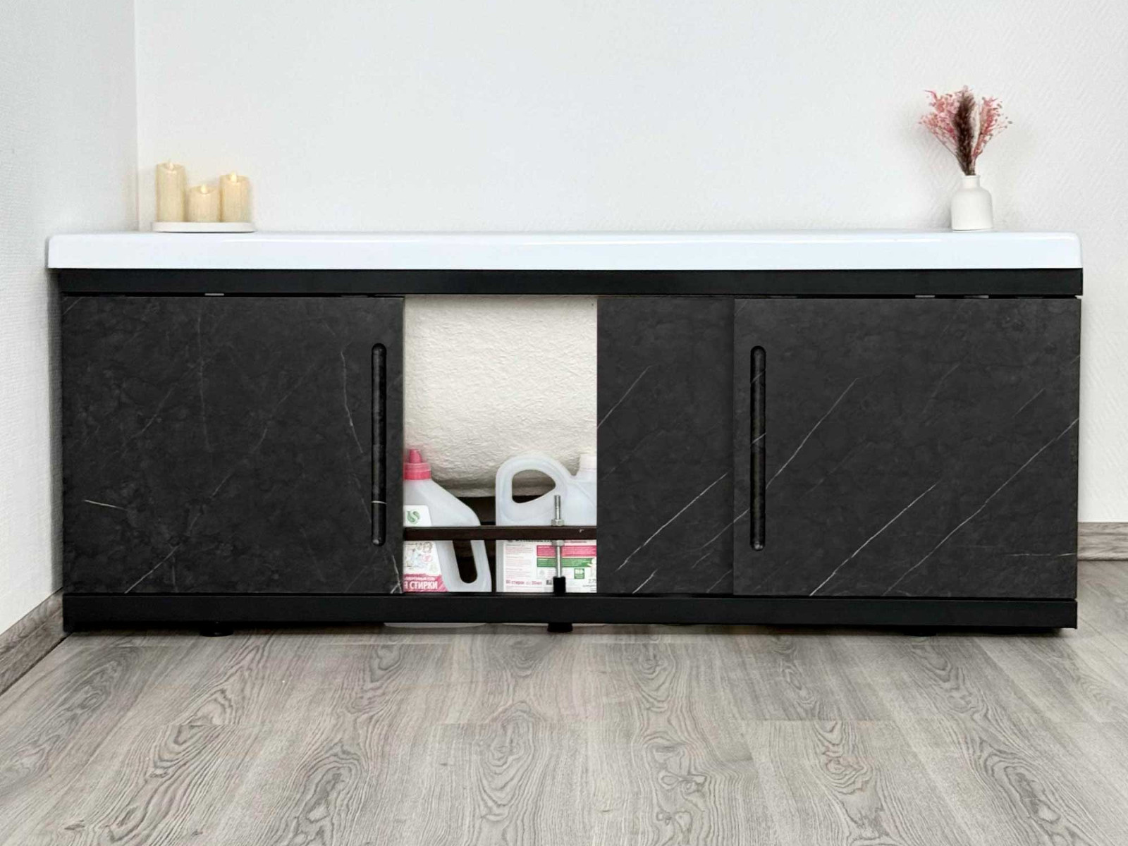- Экран под ванну МДФ Alt Black 1600 мм черный мрамор