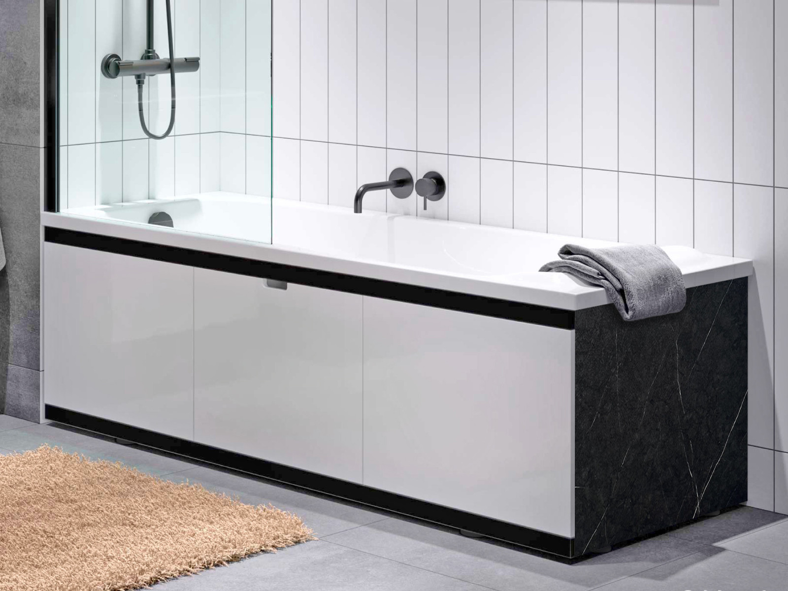 - Экран под ванну МДФ Rita Black 1600 мм белый