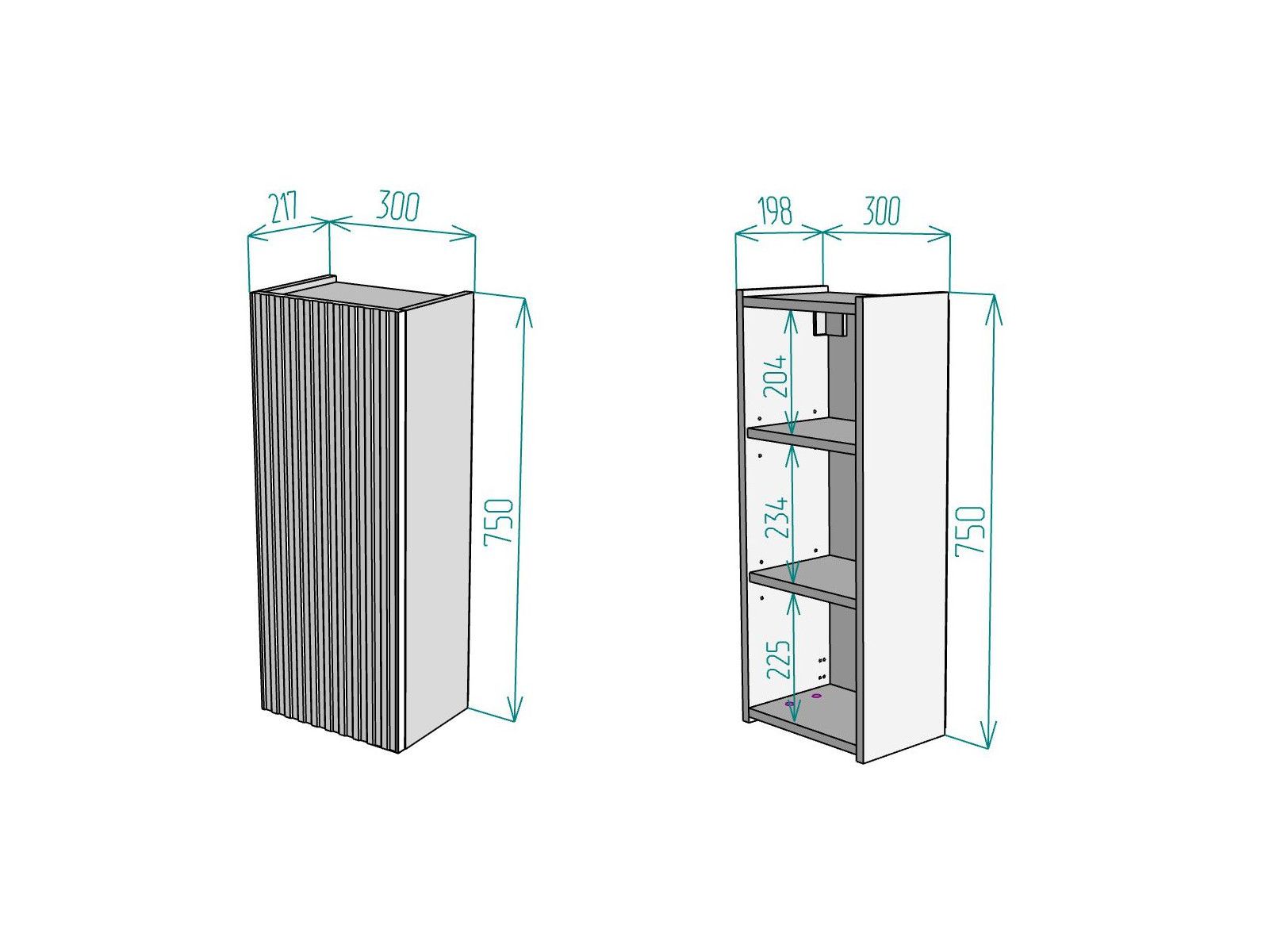 Размер ВхШхГ: 750х300х217 мм