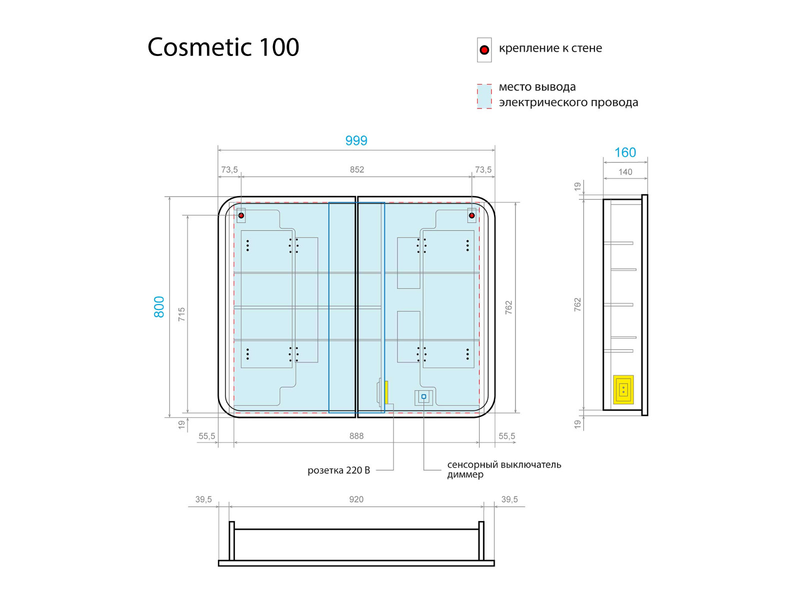 - Шкаф-трюмо зеркальный Cosmetic Light 100