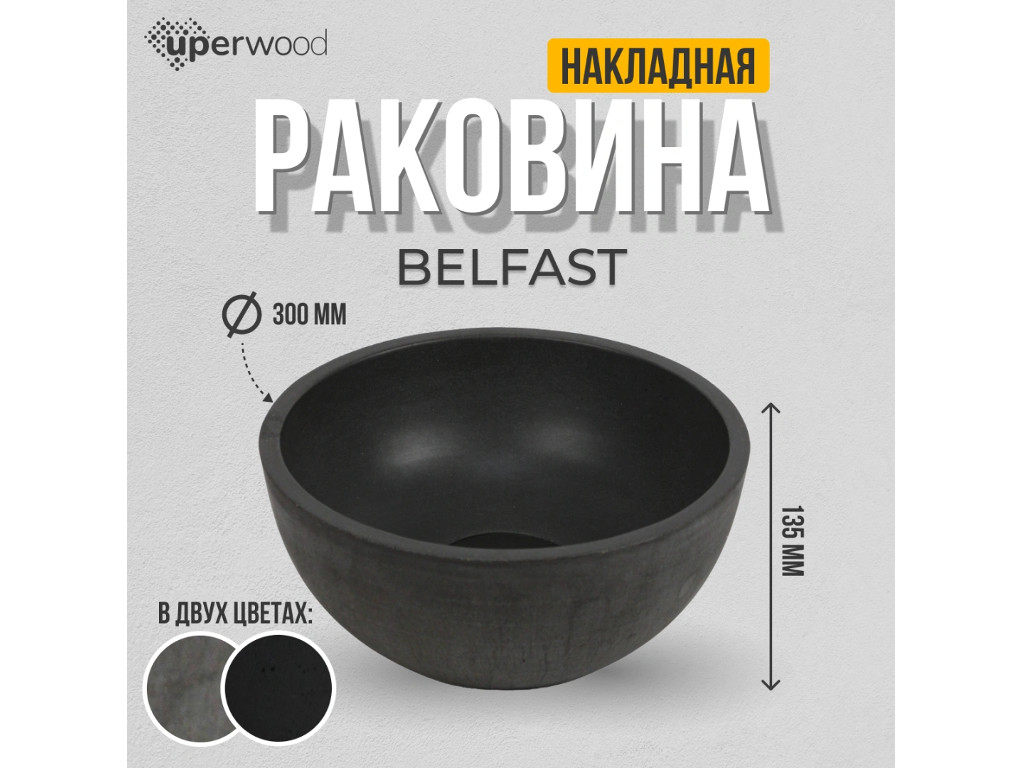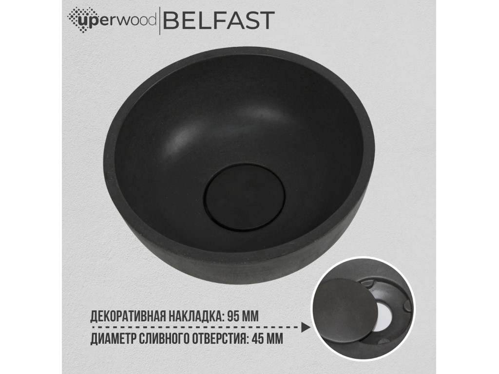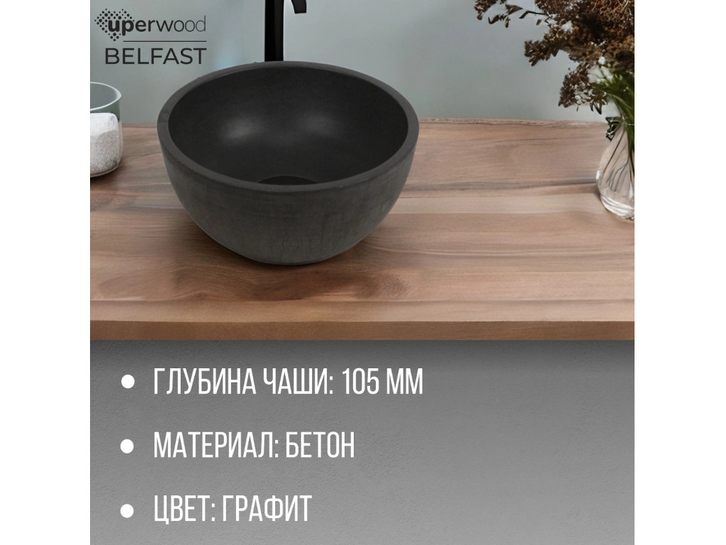 - Раковина Uperwood Belfast бетонная графит