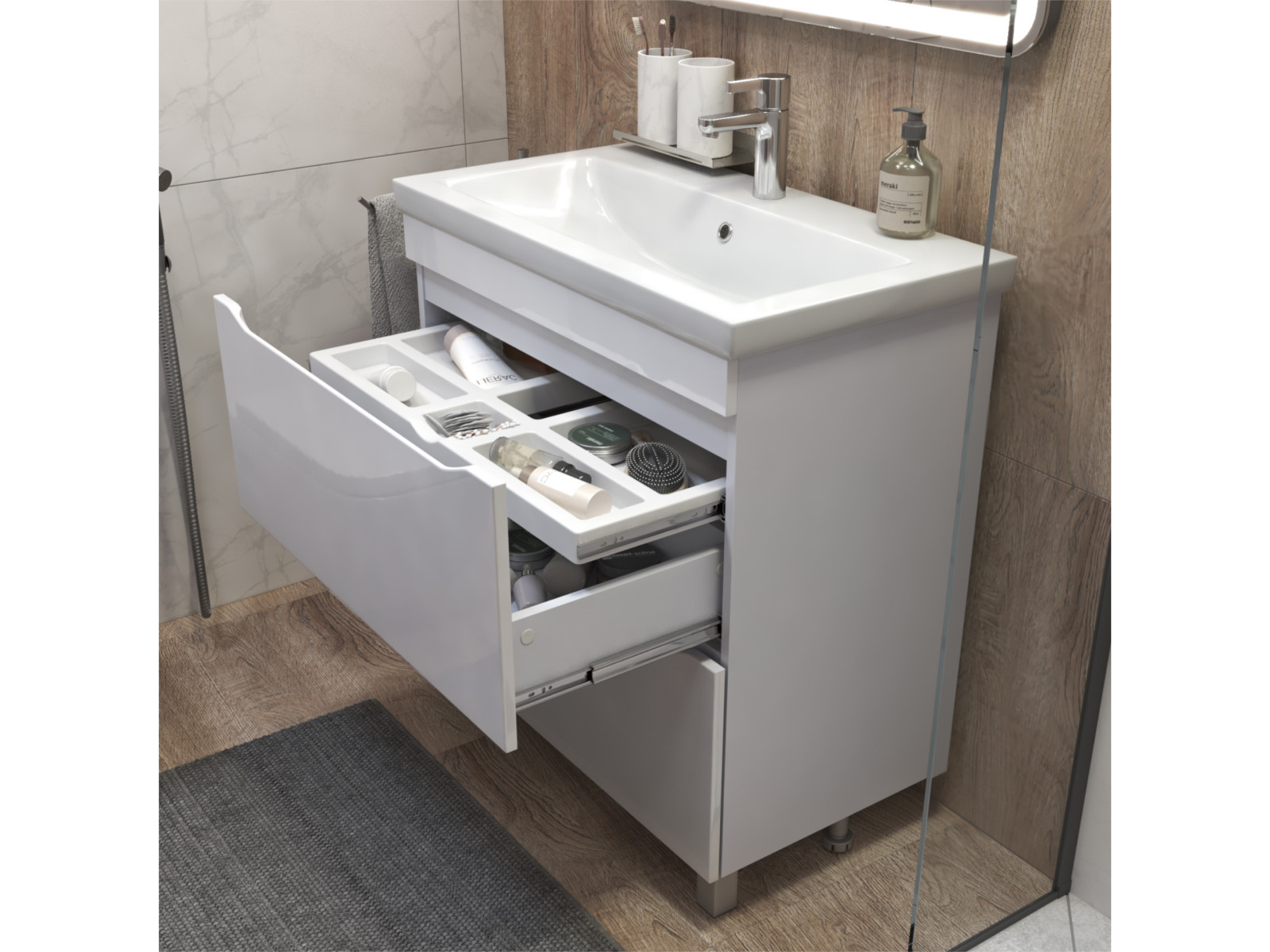 Размер тумбы с раковиной (ШxГxВ): 800x450x850 мм