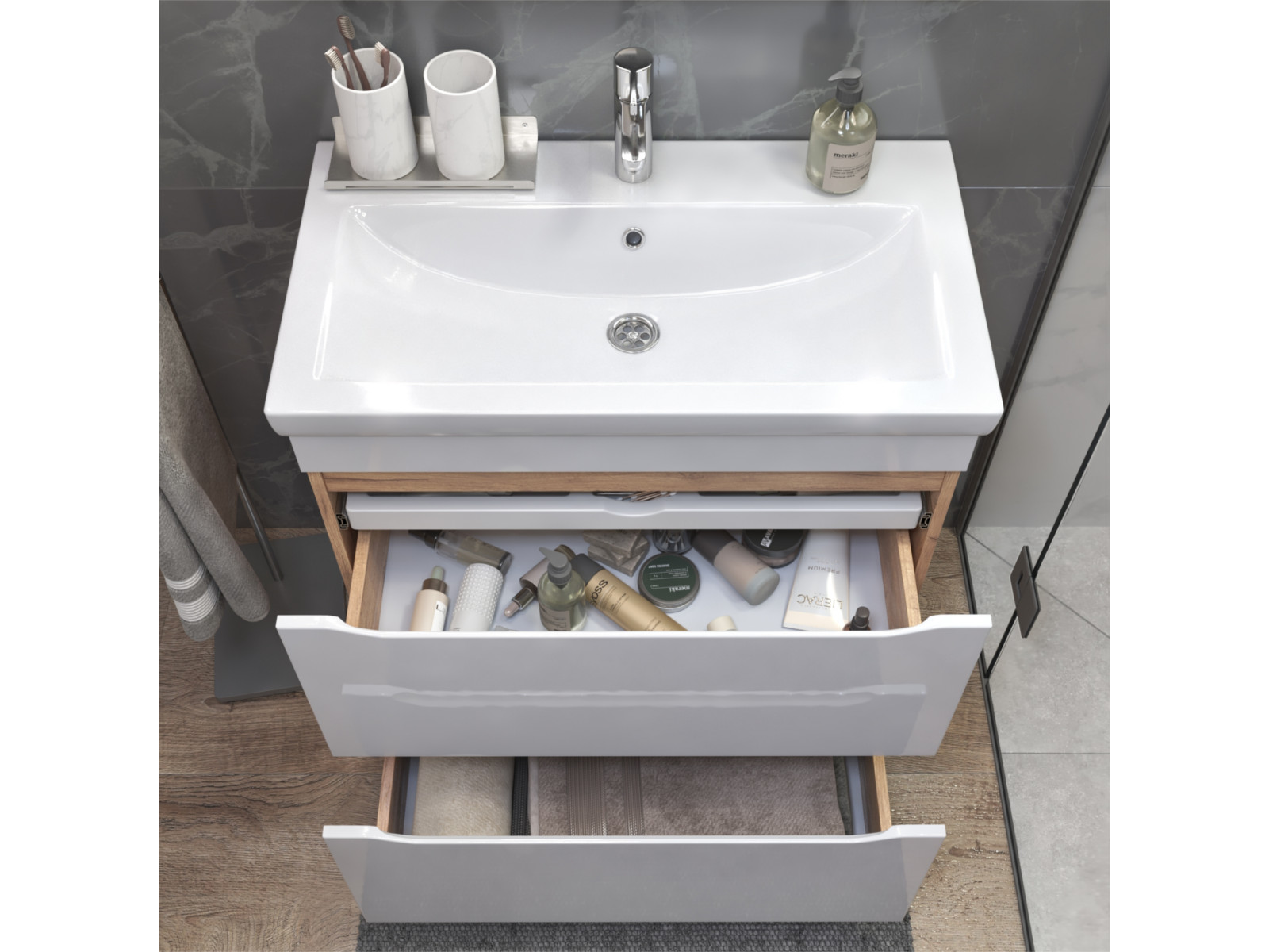 Размер тумбы с раковиной (ШxГxВ): 800x450x850 мм