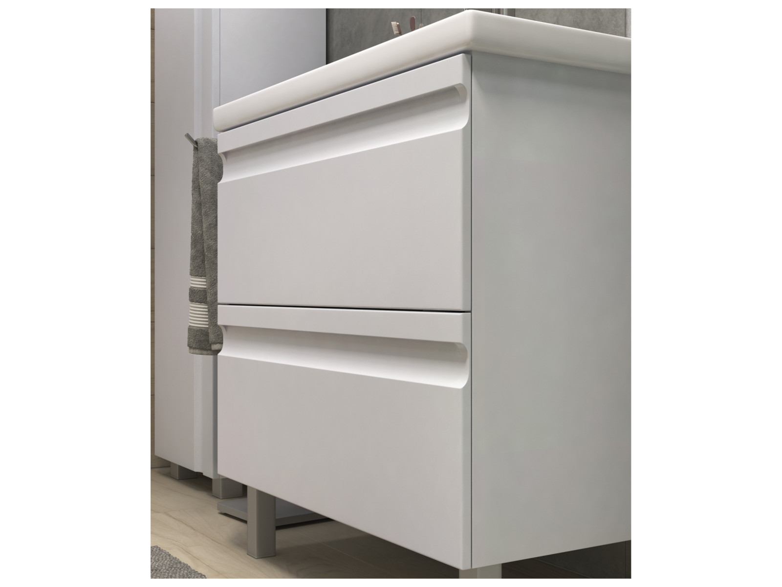 Оснащение:  2 выдвижных ящика, шариковые направляющие полного выдвижения, 2 опоры квадратные регулируемые, 1 сифон