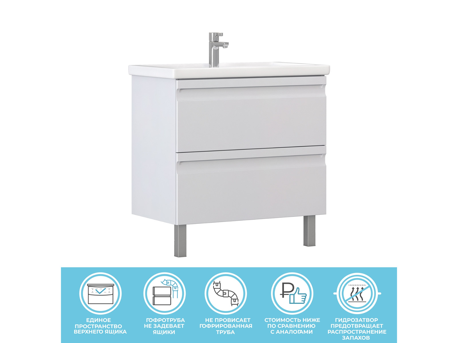 Тумба Сохо 80 напольная 2 ящика раковина Слим 80