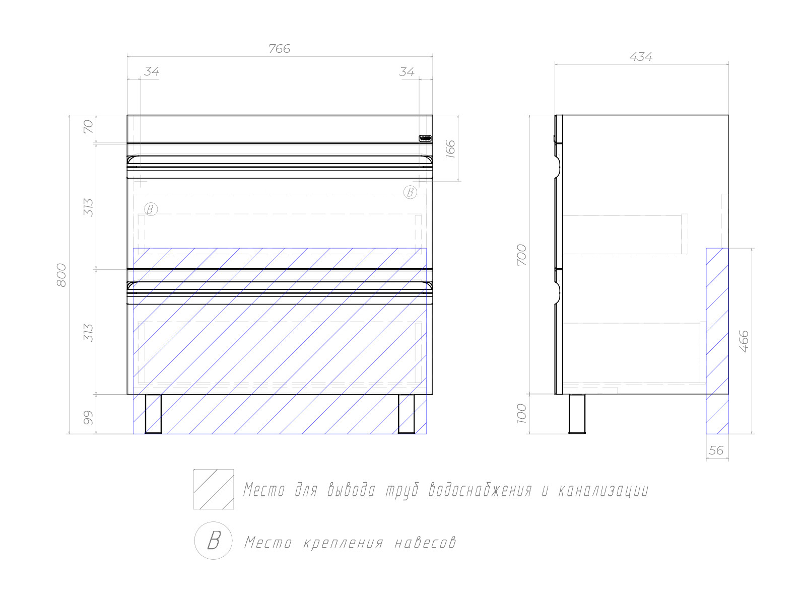 • Тумба под раковину Holly 800-0-2 (Фостер) напольная/подвесная