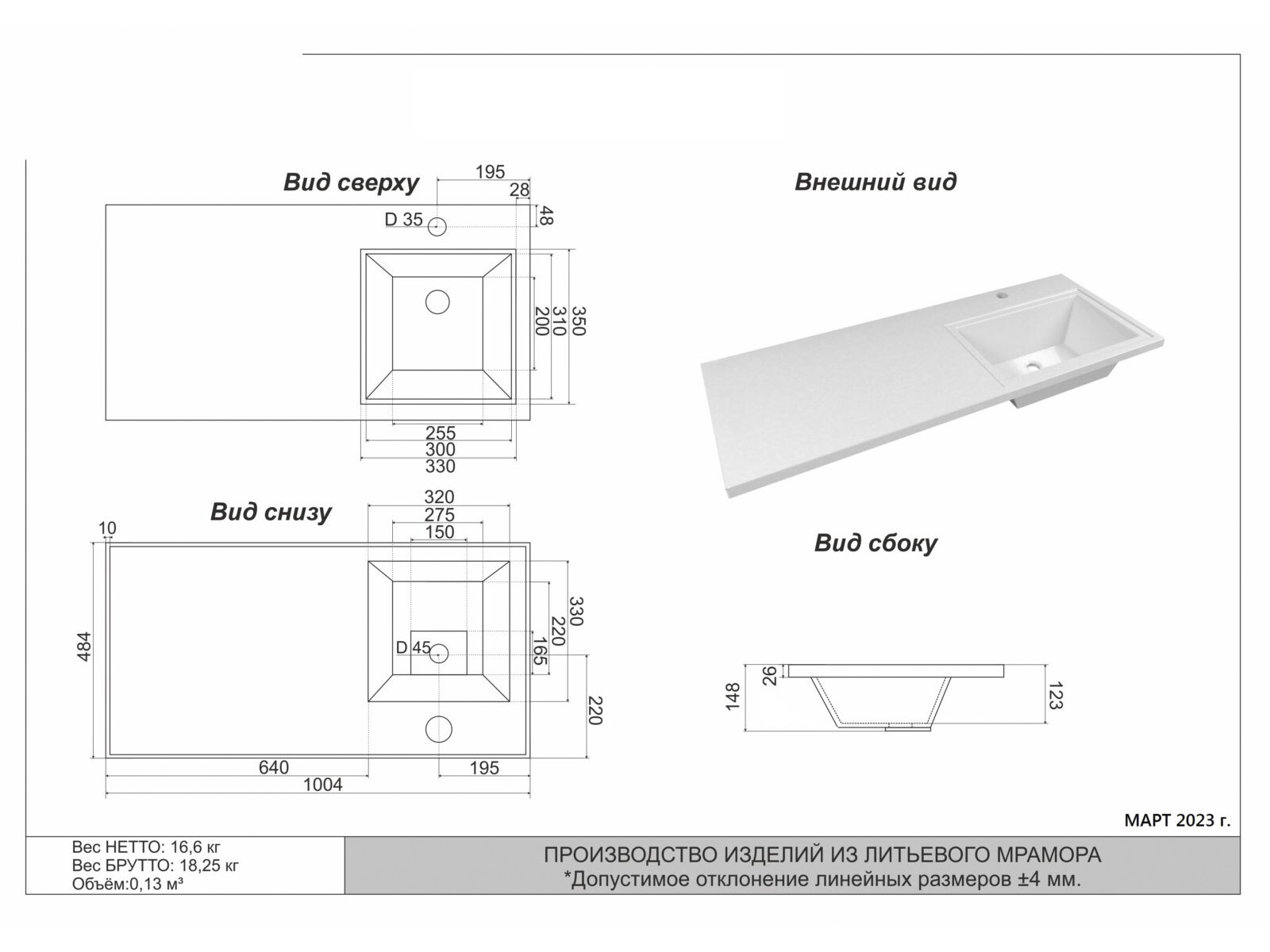 - Тумба Куба Риф 57 напольная 2 ящика раковина под Marshall 120 правая