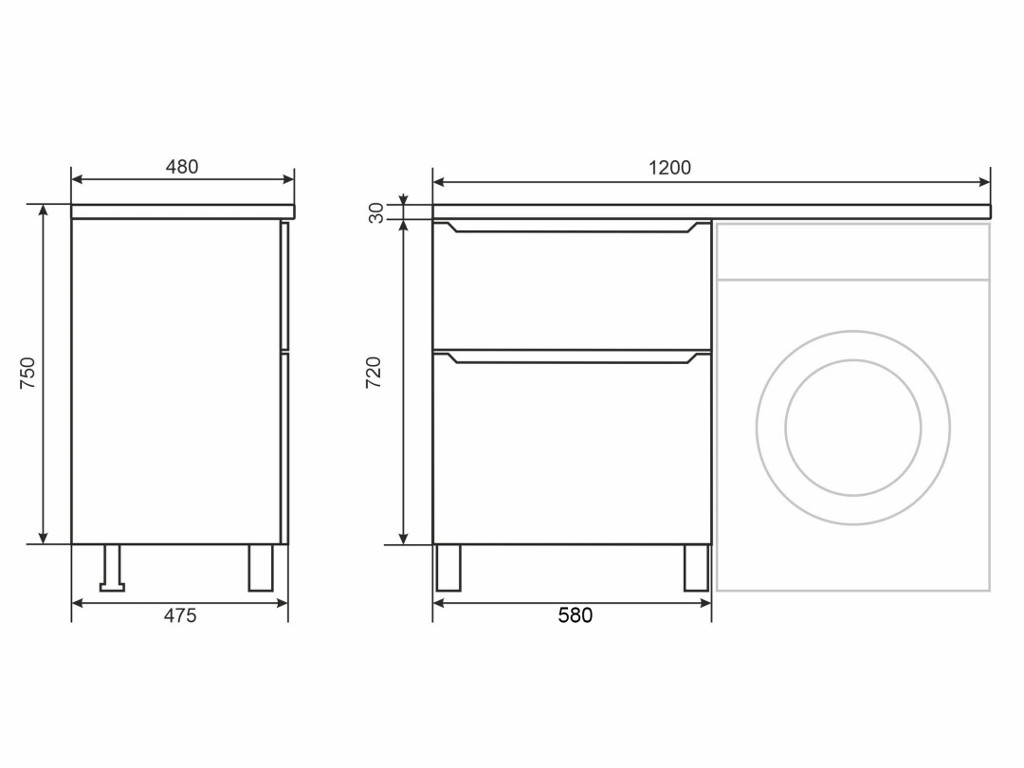 - Тумба под стиральную машину Uperwood Tanos 60 см, напольная, 2 ящика, белая/графит