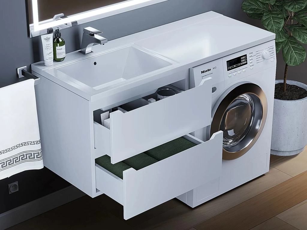 - Тумба под стиральную машину Uperwood Tanos 60 см подвесная левая белый