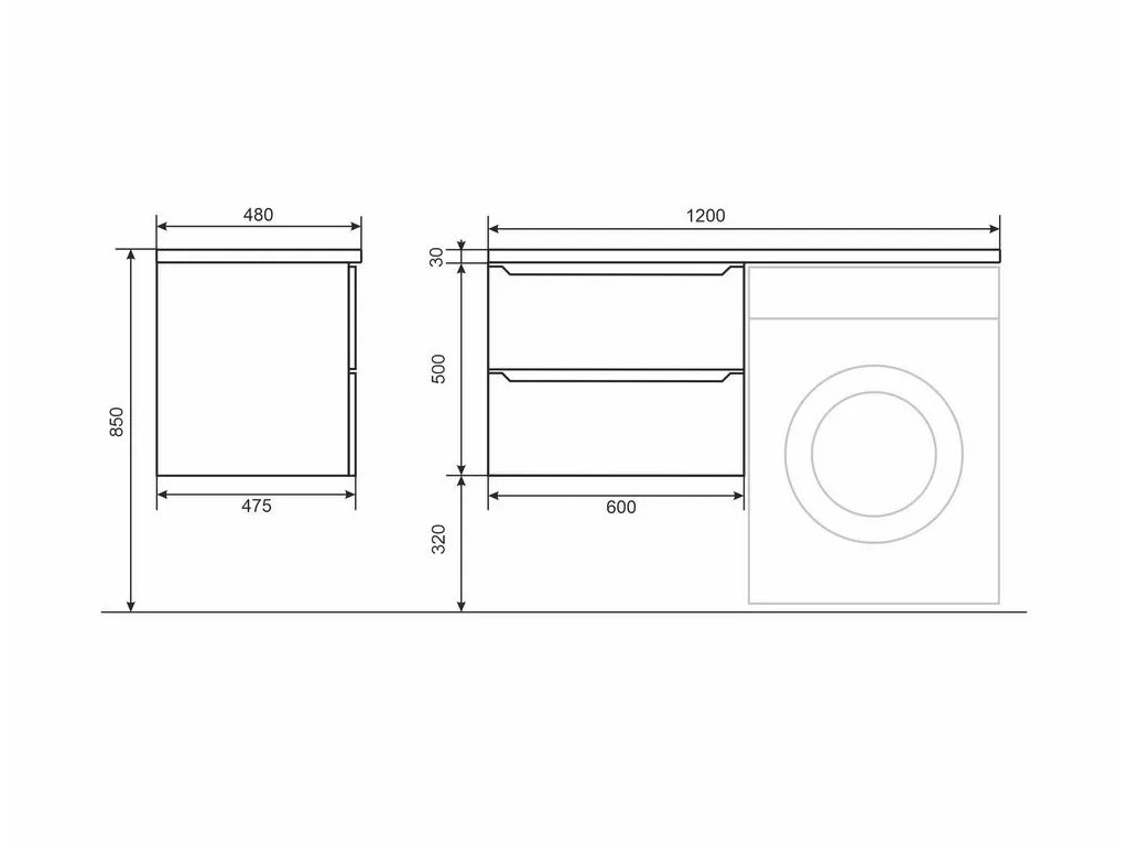 - Тумба под стиральную машину Uperwood Tanos 60 см подвесная левая белый/графит