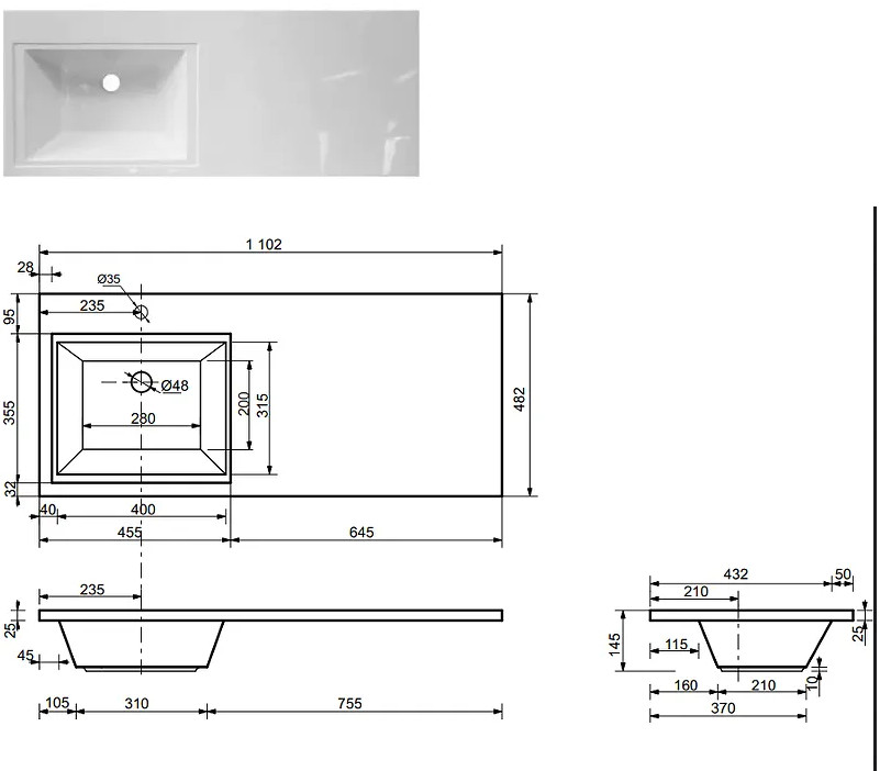 - Тумба с раковиной Dallas Luxe 1100 напольная 3 ящика левая