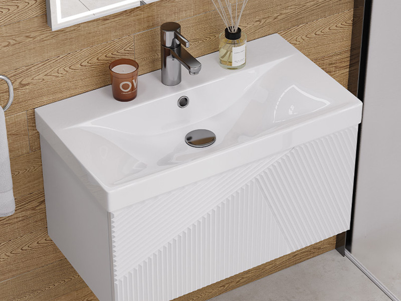 Материалы тумбы: МДФ, влагостойкая ЛДСП, полимерное покрытие ПВХ, врезная ручка, европейская фурнитура