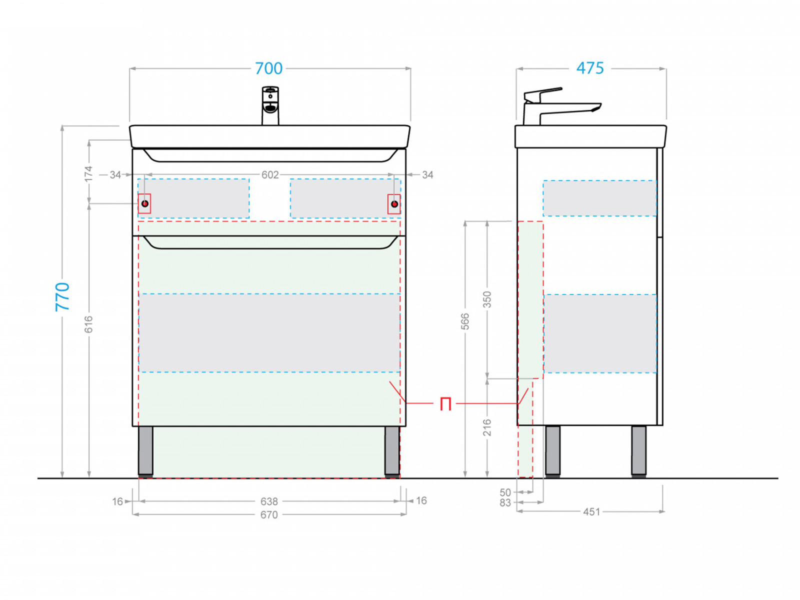 - Материал раковины: Фаянс