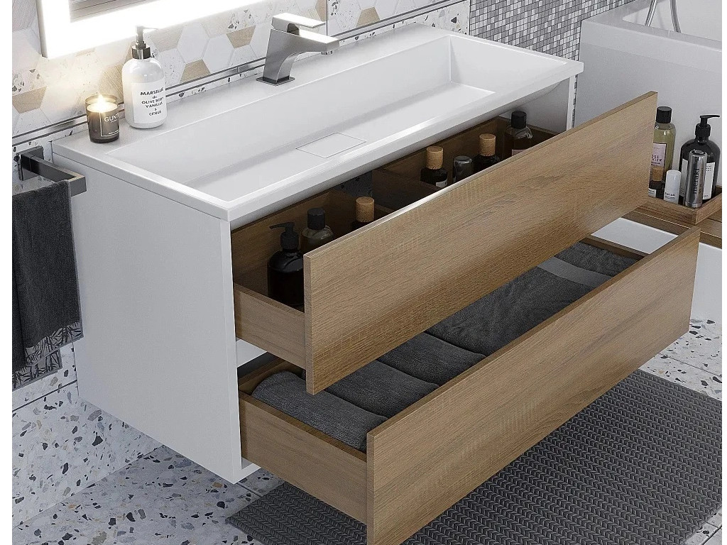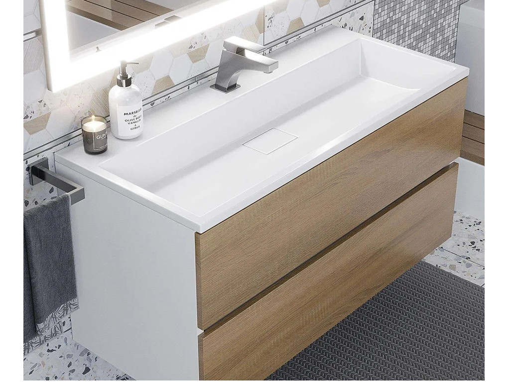 Тумба с раковиной Uperwood Barsa 100 см раковина белая-тумба белая/дуб сонома