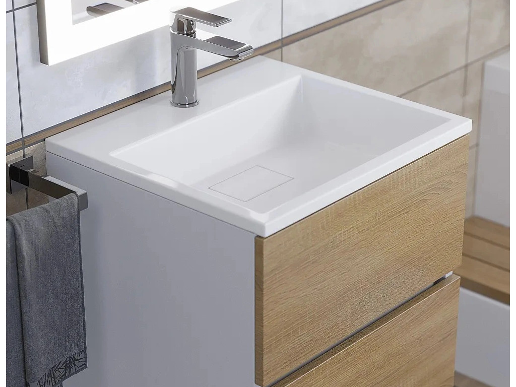 Тумба с раковиной Uperwood Barsa 50 см раковина белая-тумба белая/дуб сонома