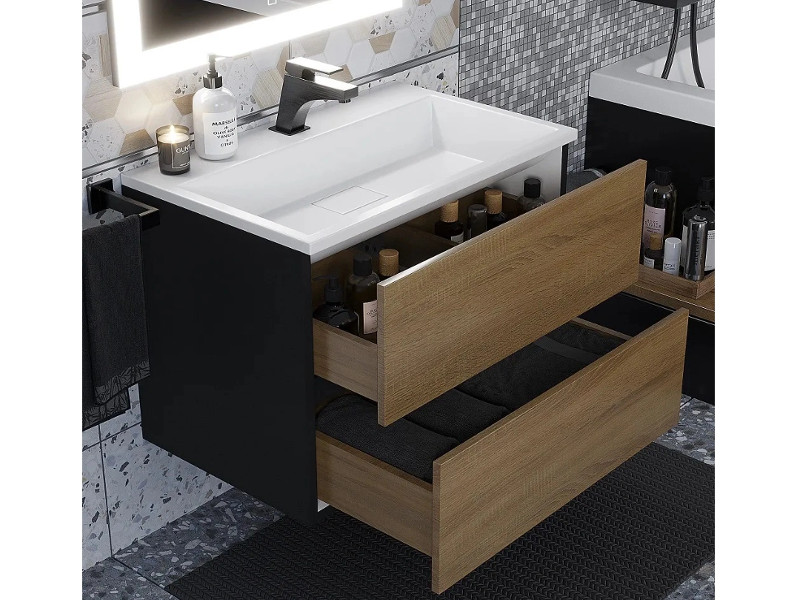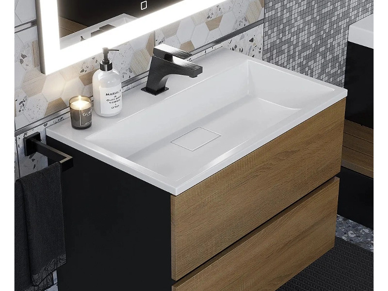 - Тумба с раковиной Uperwood Barsa 70 см раковина белая-тумба черная/дуб сонома