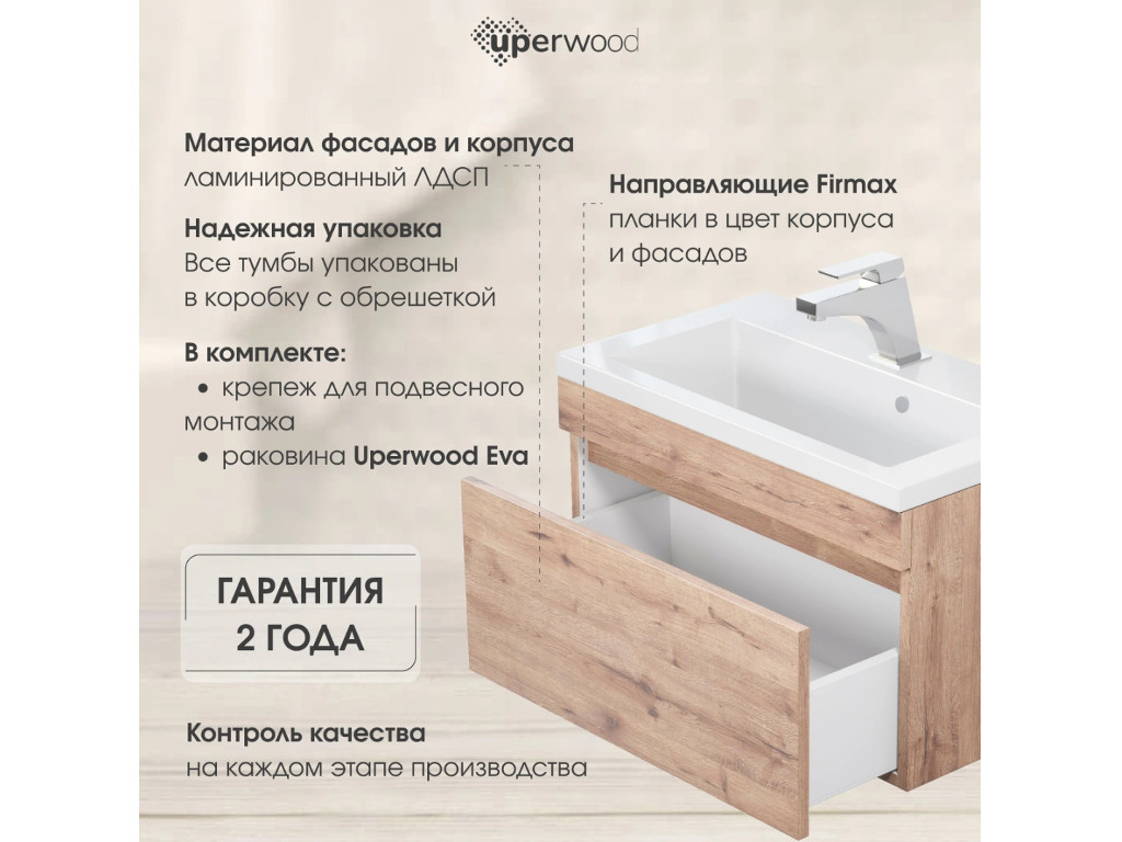 - Тумба с раковиной Uperwood Eva Крафт Табачный 75 см