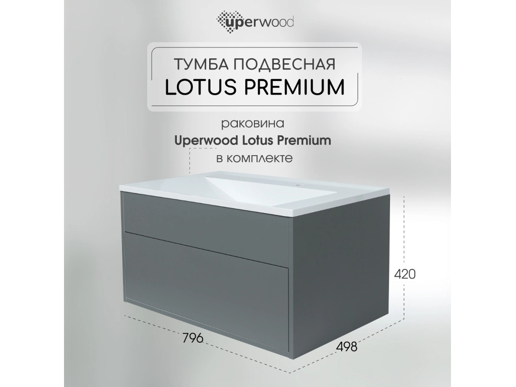 - Тумба с раковиной Uperwood Lotus Premium серая 80 см