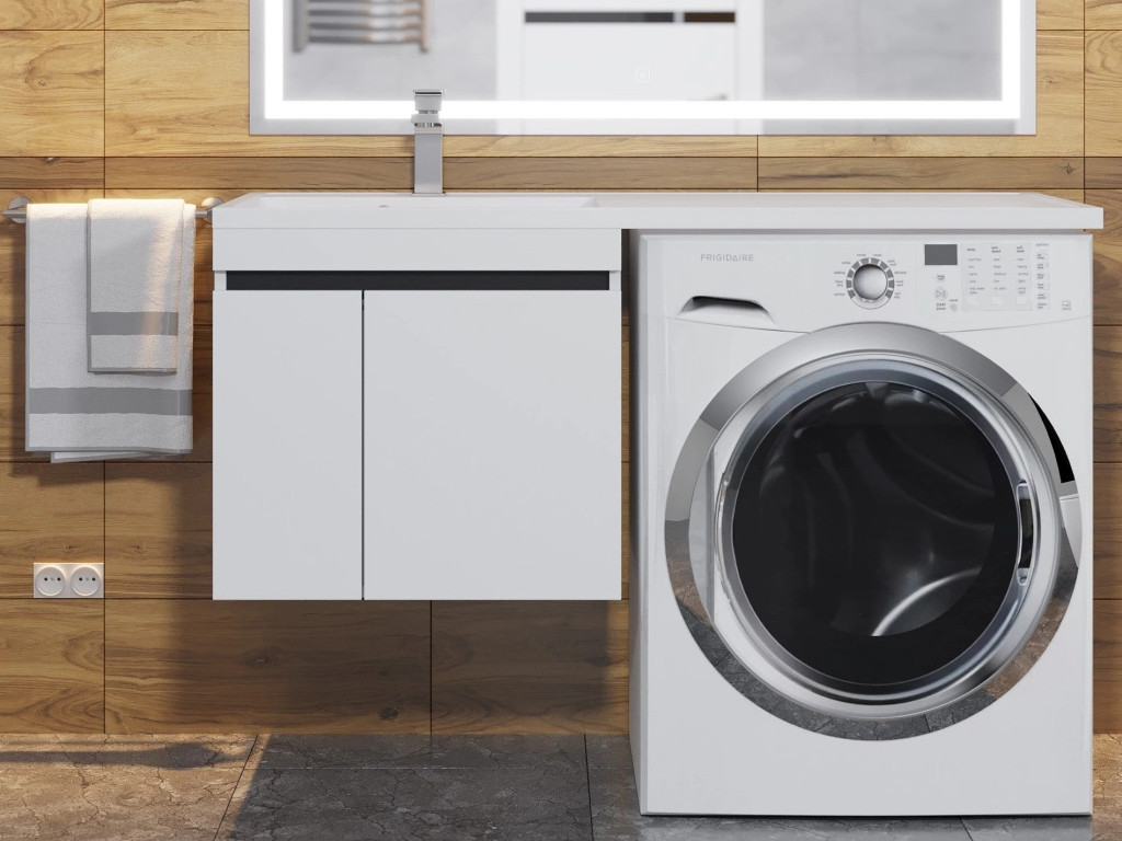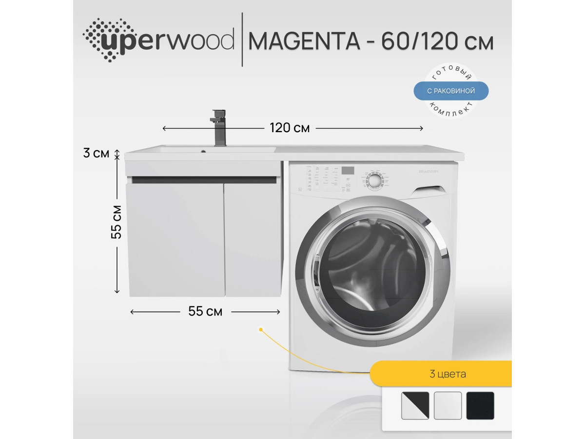 - Тумба с раковиной Uperwood Magenta 60-120 см подвесная белая/графит с дверцами левая