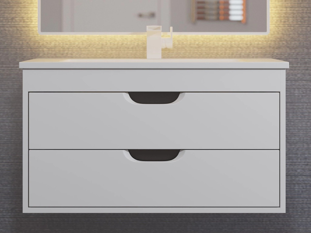 - Тумба с раковиной Uperwood Modul матовая белая/графит 80 см