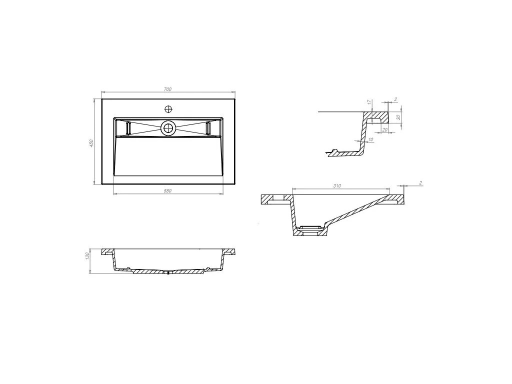 - Тумба с раковиной Uperwood Next Premium белая 1 ящик 70 см