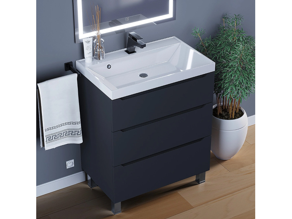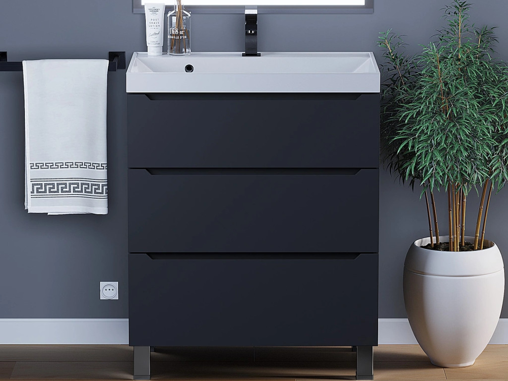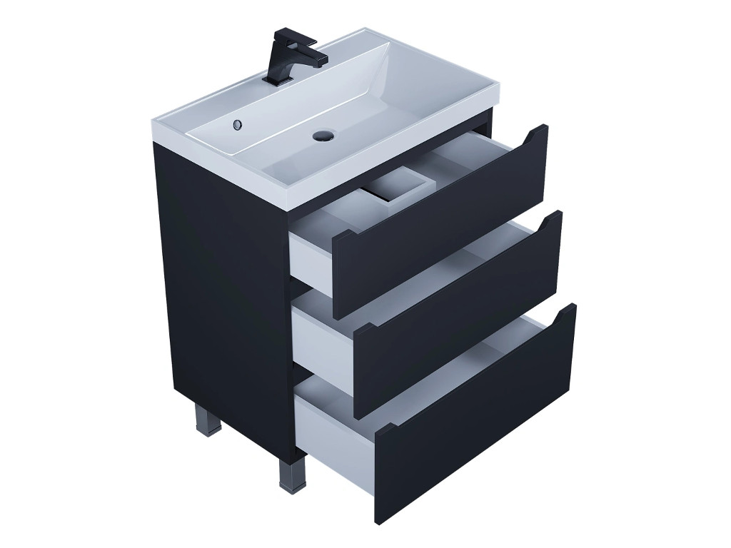 - Тумба с раковиной Uperwood Tanos 3 ящика напольная 70 см черная