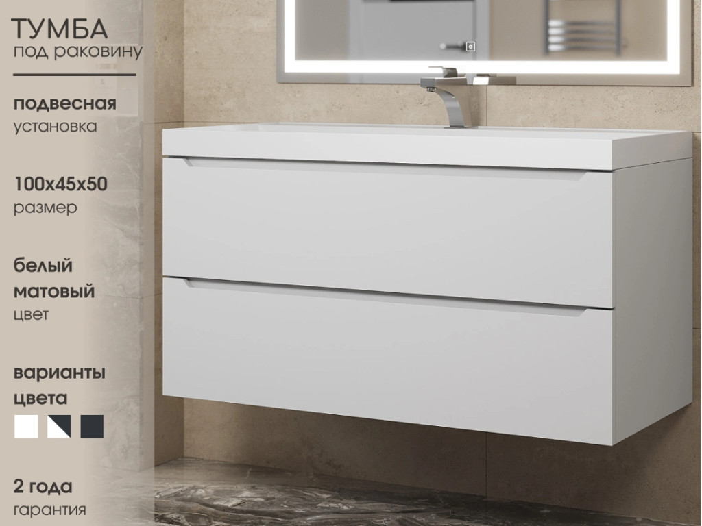 Тумба с раковиной Uperwood Tanos матовая белая 100 см