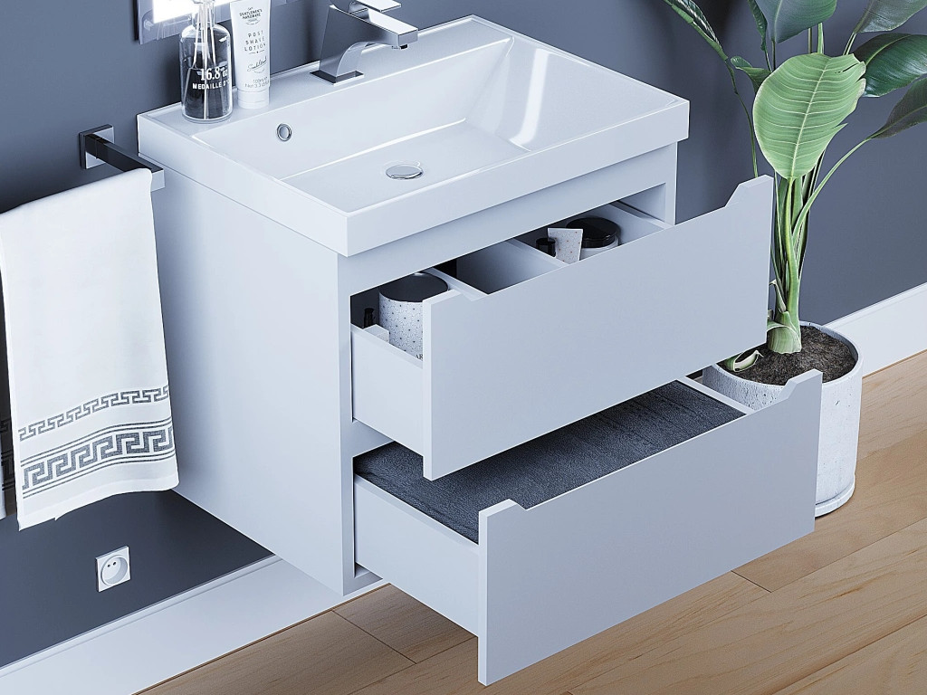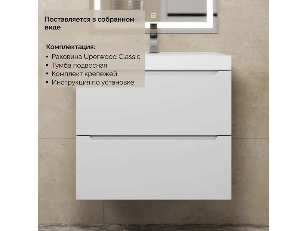 - Тумба с раковиной Uperwood Tanos матовая белая 60 см