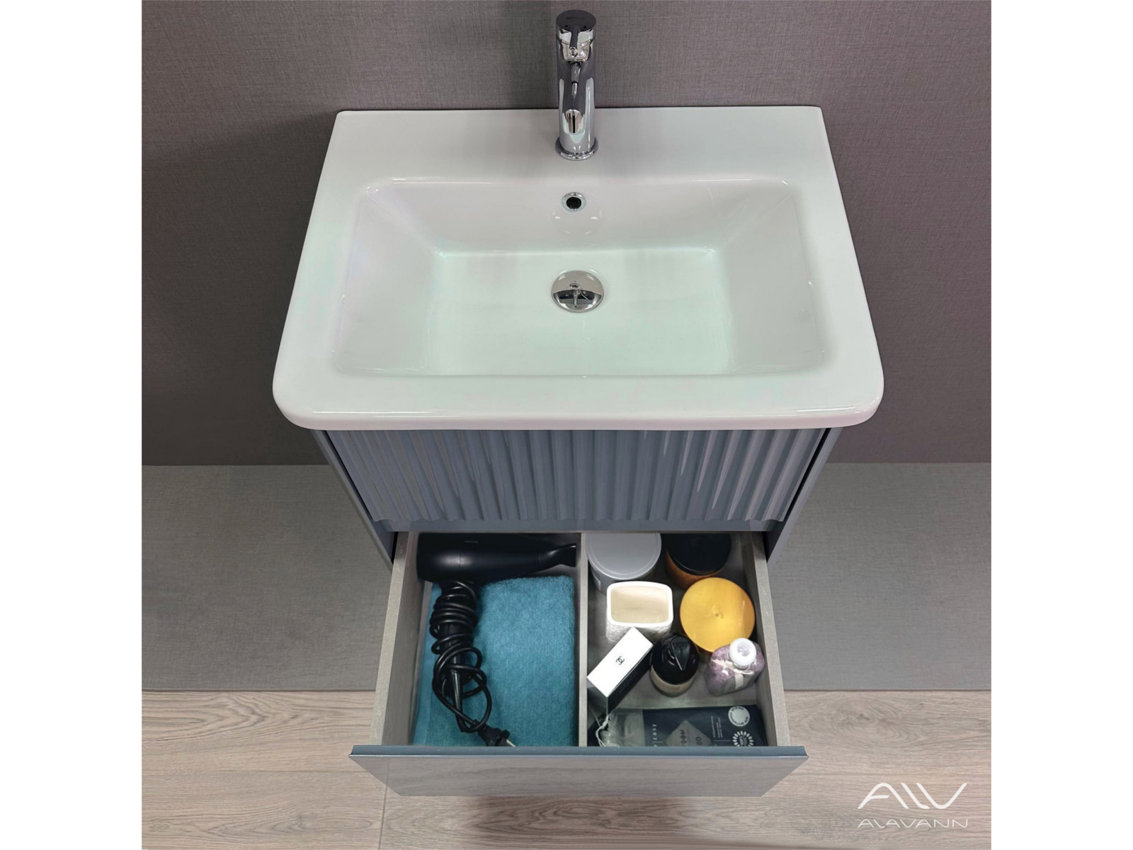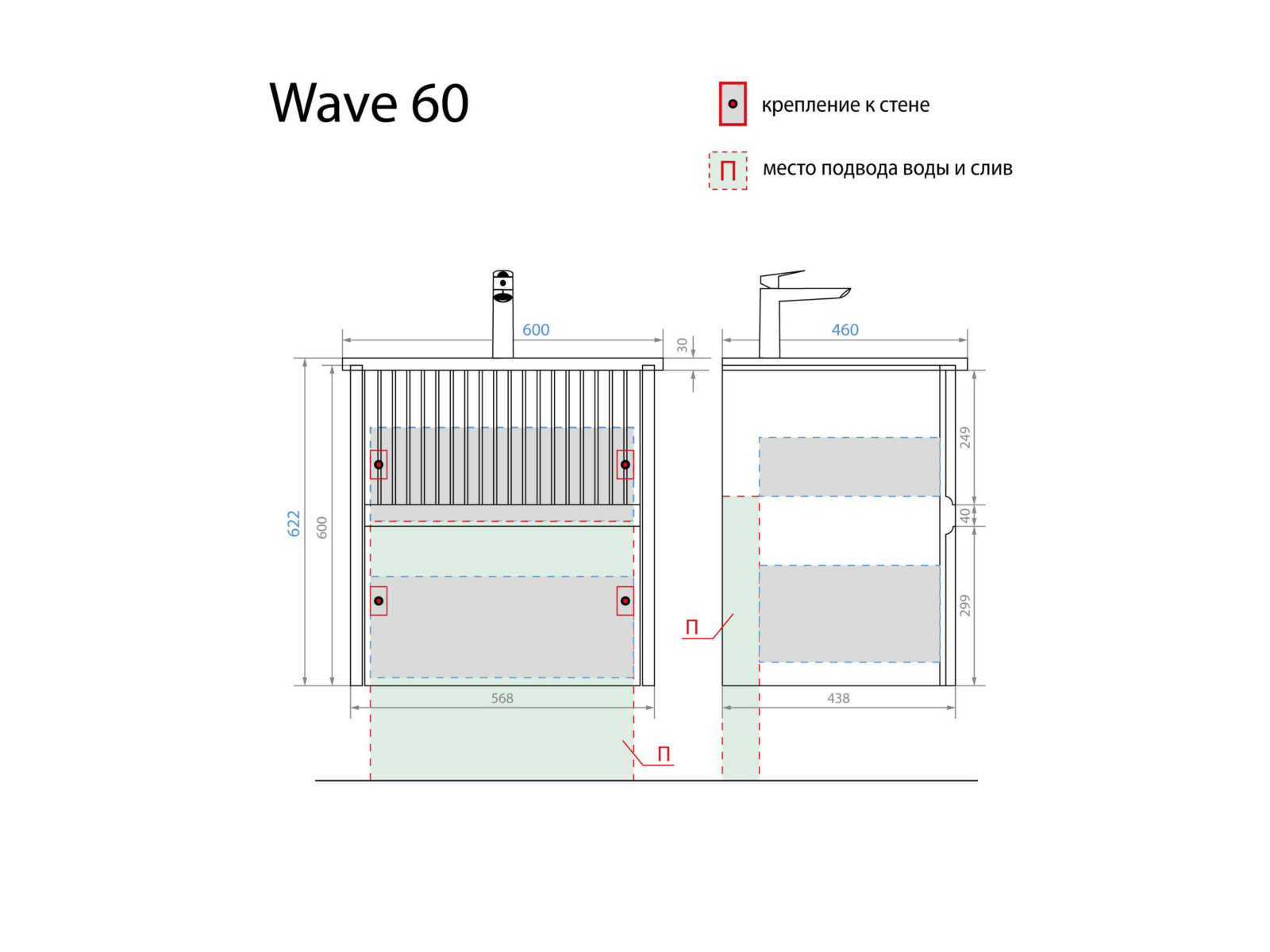 - Тумба с раковиной Wave 60 голубой деним