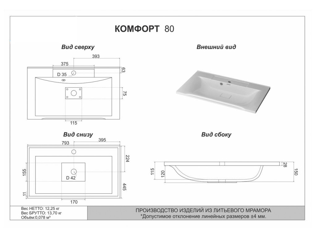 - Тумба Сохо 80 напольная 2 ящика раковина Комфорт 80