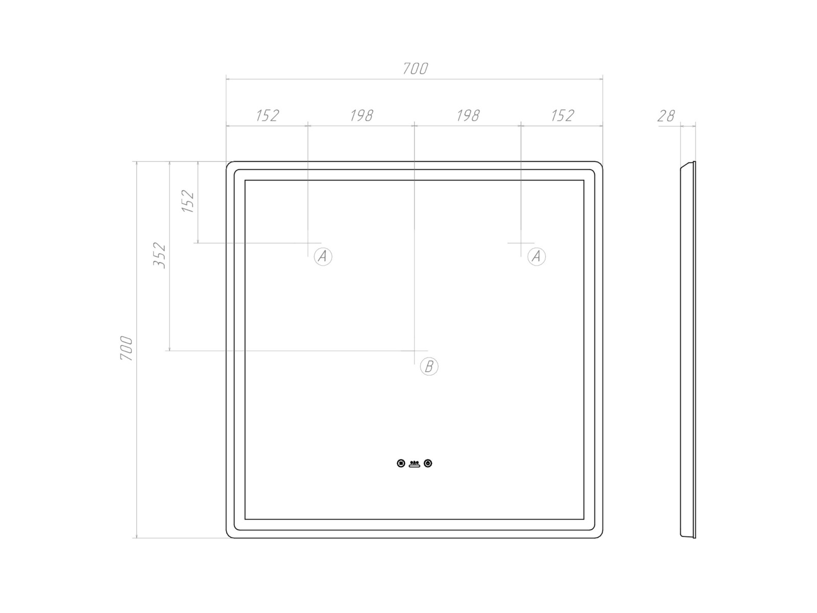 Размеры ШхВхГ: 700x700x28 мм