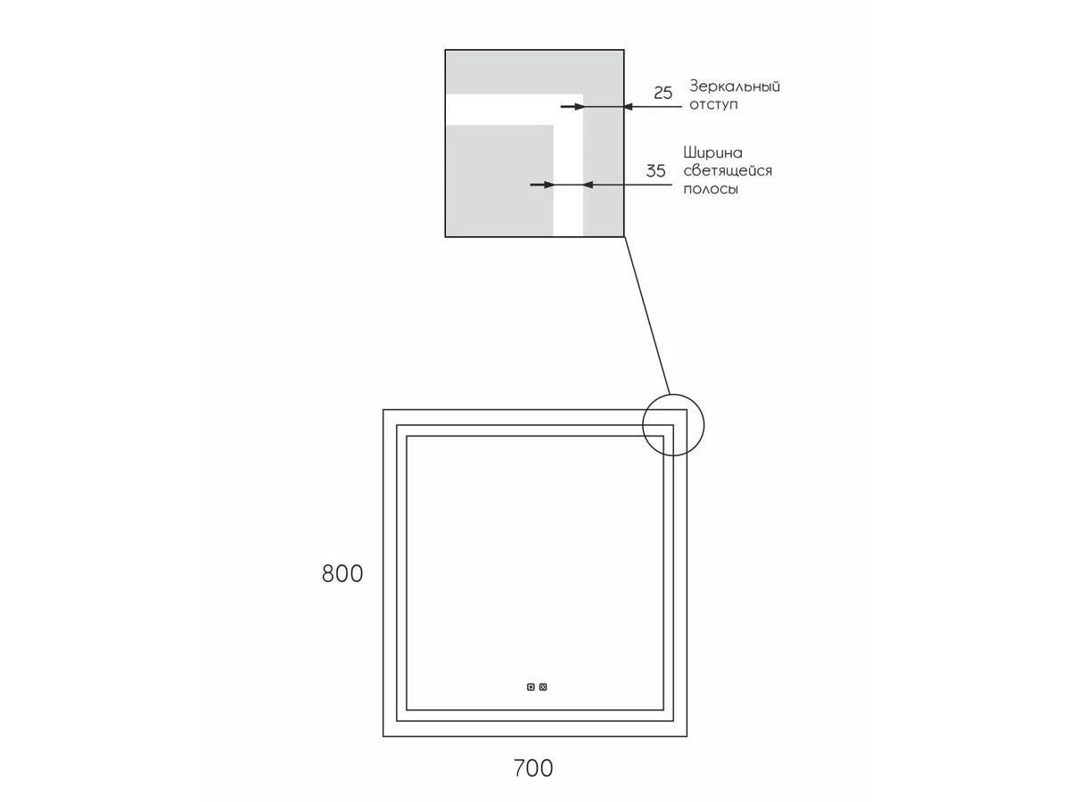Модель оснащена встроенной LED-подсветкой, сенсорным выключателем с диммером, который позволяет включить и отрегулировать яркость подсветки в одно касание.