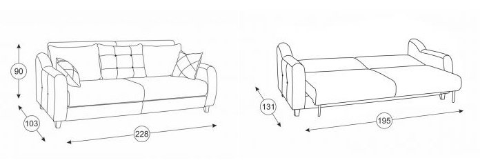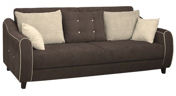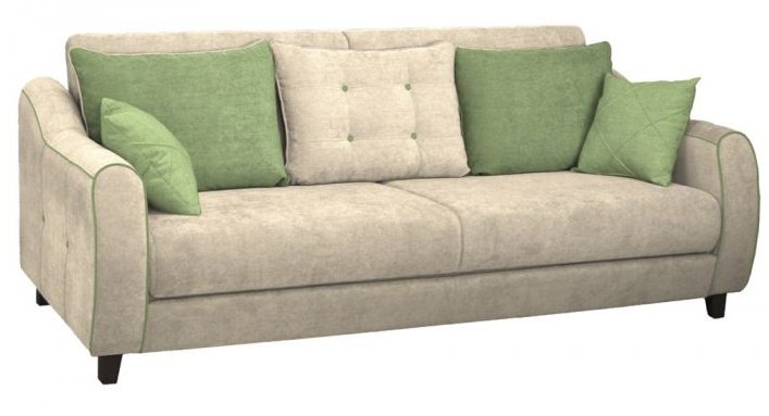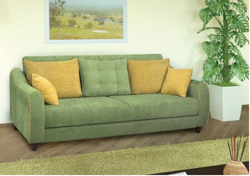 Каркас дивана выполнен из ЛДСП, фанеры, хвойного и березового бруса. Элементы сиденья и спальная часть из ППУ. Наполнитель подушек – полиэфирное волокно и крошка ППУ. Опоры - пластик.