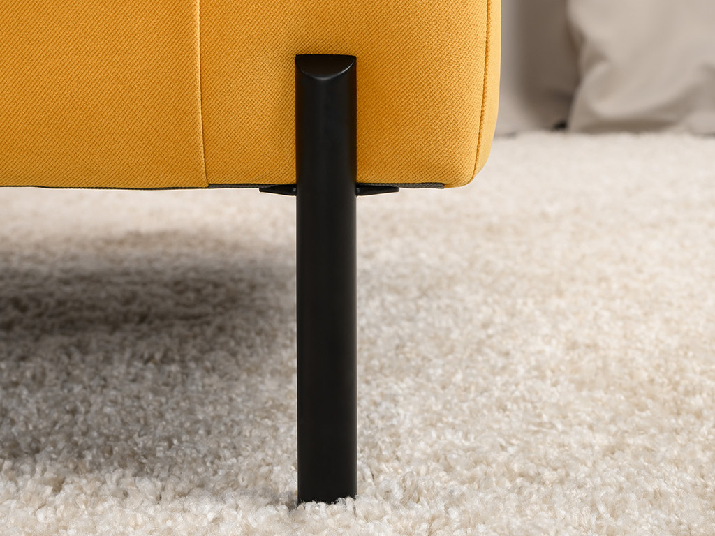 Декоративная утяжка на спинке кресла, декоративная подушка в цвете кресла, металлические опоры переходят в декоративный элемент подлокотника