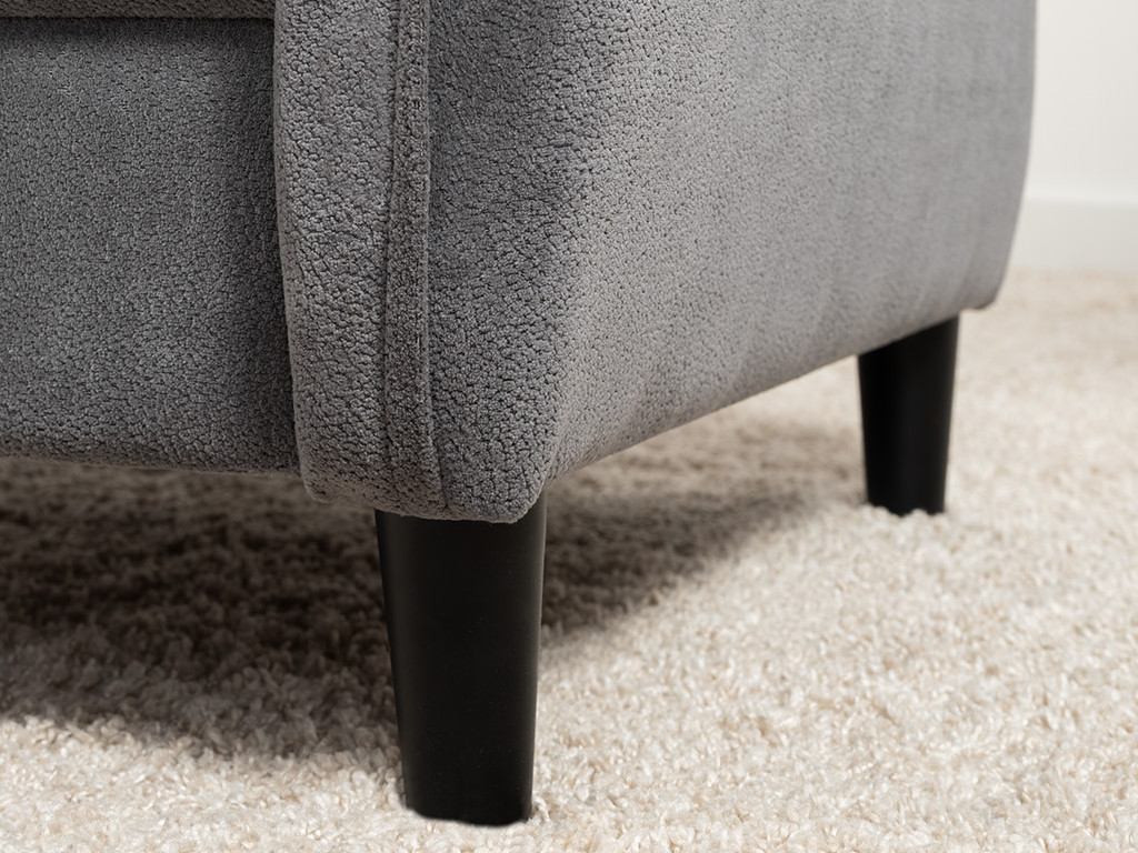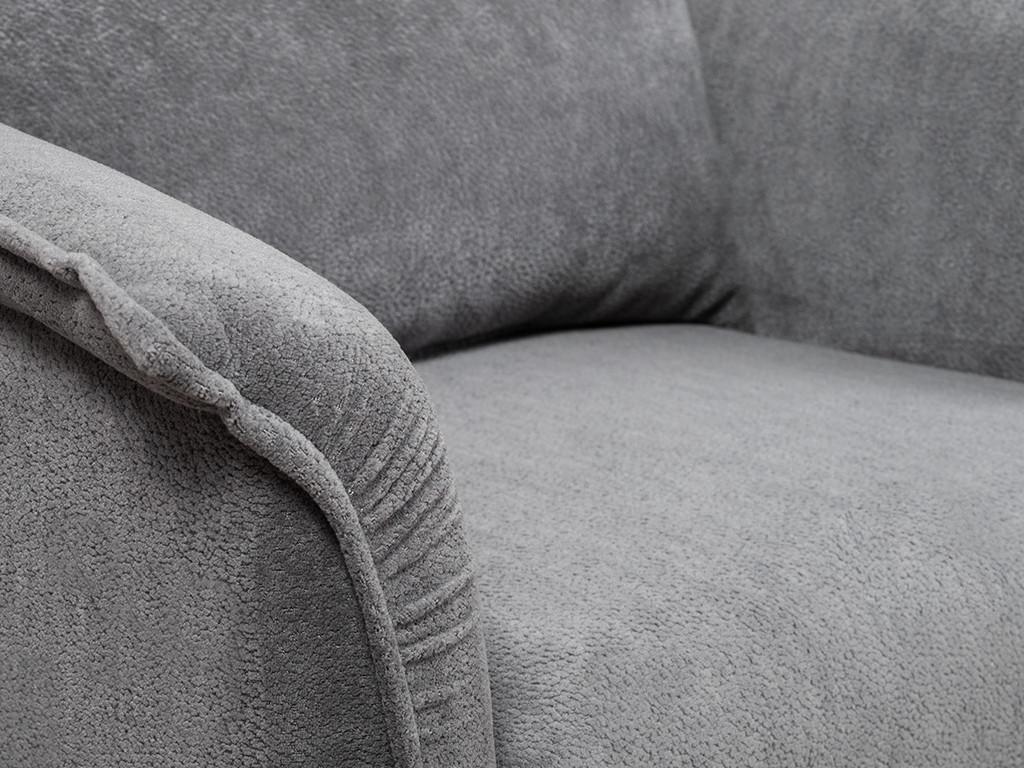 Кресло с приспинной подушкой трапецивидной формы на молнии, по трем сторонам которой проложена отделочная строчка на 1,2 см. По контуру боковин проложен декоративный кант на 1,2 см основной ткани. Кант проходит по центру передней части боковины, а по внутренней верхней части сборка.