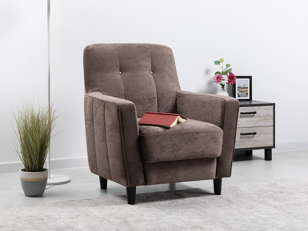 Декор: Стежка на внутренней спинке и боковине. Отделочная строчка по сидению. Декоративyый кант в тон на подлокотниках и спинке. Изюминку коллекции придают металлические пуговицы на спинке.