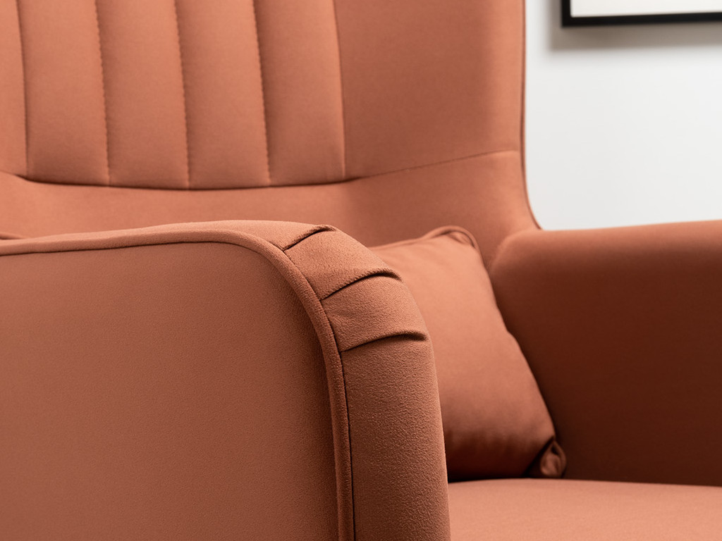 Декор: Вертикальная объемная стежка в средней части спинки; кант на спинке, подлокотниках и декоративной подушке
