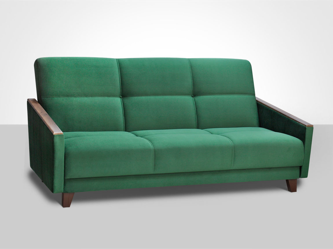 Минималистичный дизайн, узкие подлокотники с выбором цвета накладок из МДФ,контрастная отстрочка и утяжки-пуговицы.