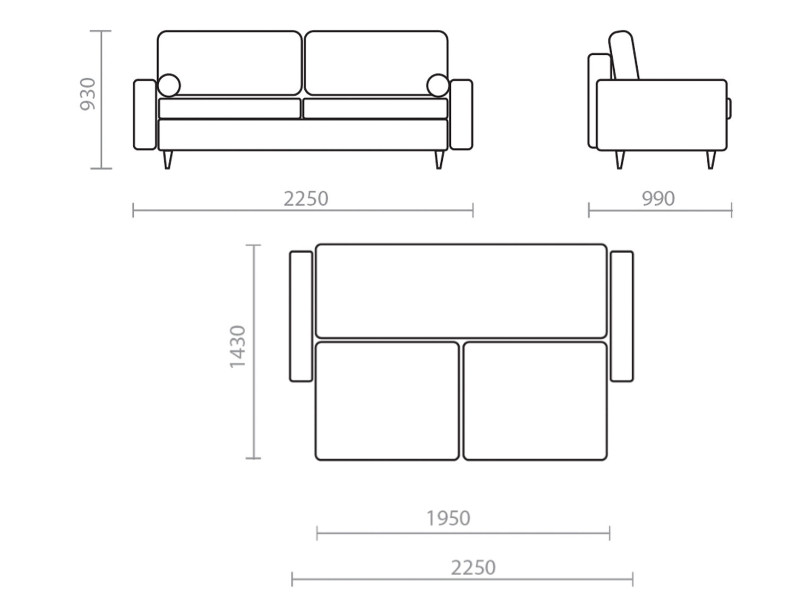 - Длина спального места, мм 1950