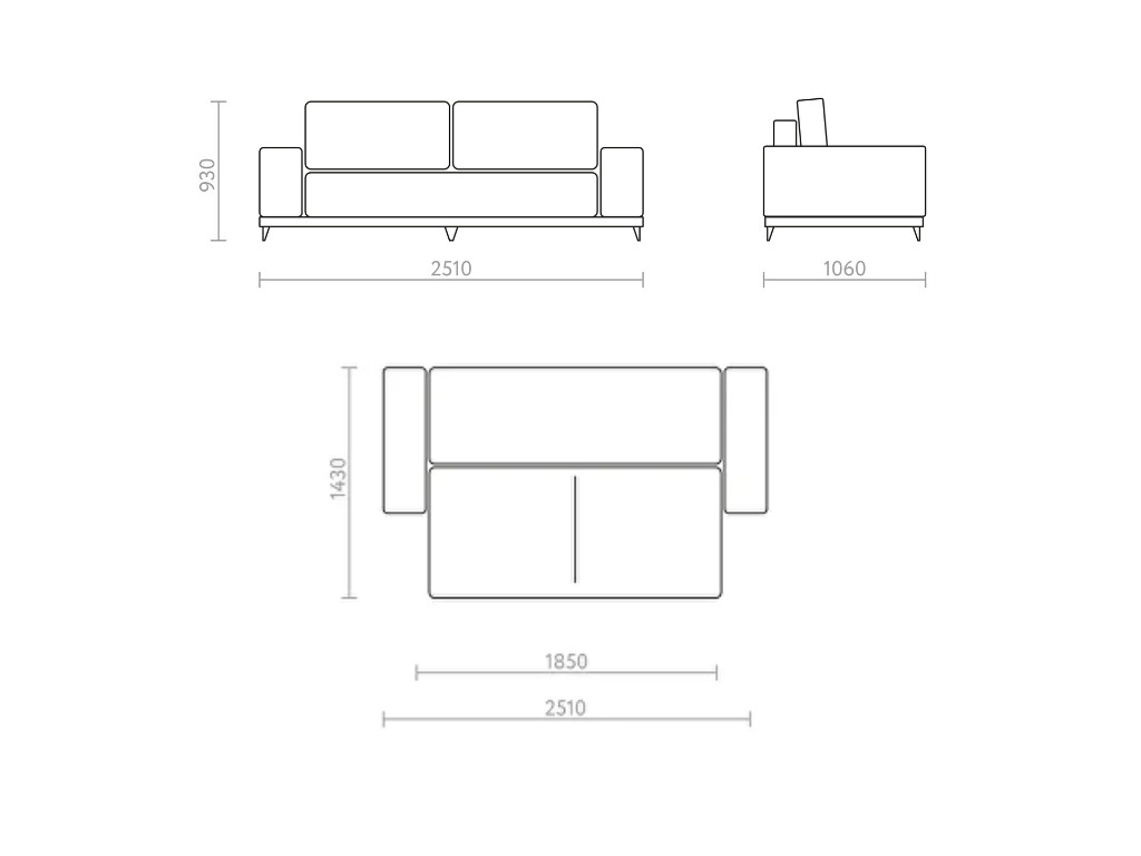 - Длина спального места, мм 1850