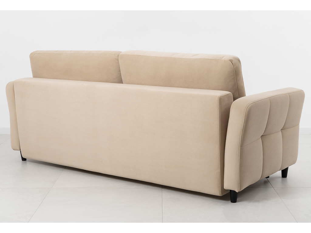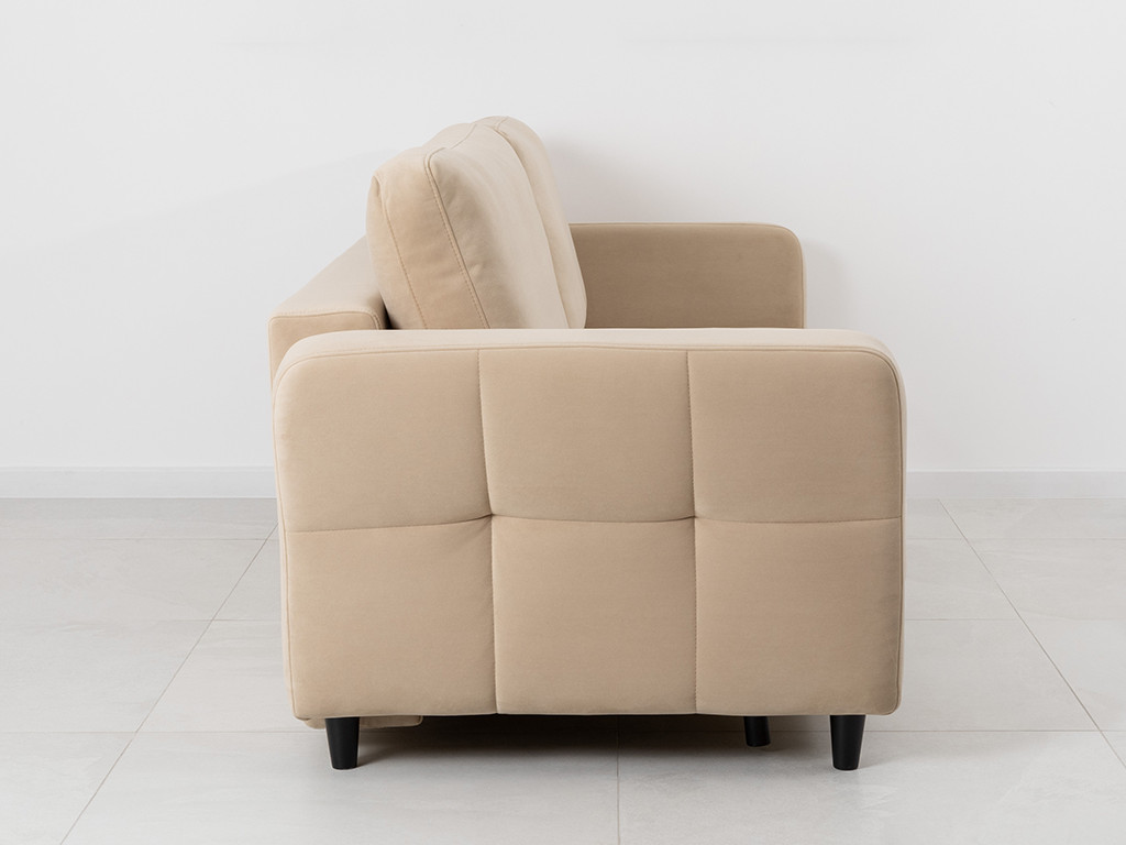 Ровная отстрочка по всему периметру сидения и стежка? создающая эффект пышности выделенных форм. Подлокотники прямые с изгибом в наружные стороны, с выраженной стежкой по лицевой стороне. Стежка на посадочной части дивана.