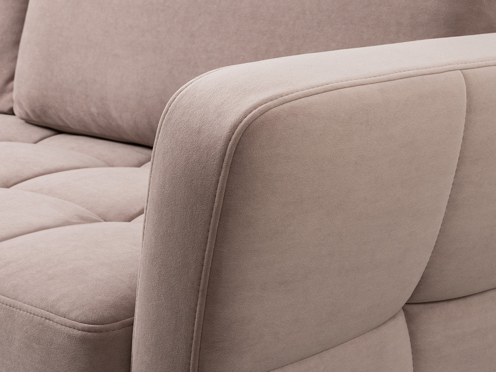 Ровная отстрочка по всему периметру сидения и стежка? создающая эффект пышности выделенных форм. Подлокотники прямые с изгибом в наружные стороны, с выраженной стежкой по лицевой стороне. Стежка на посадочной части дивана.