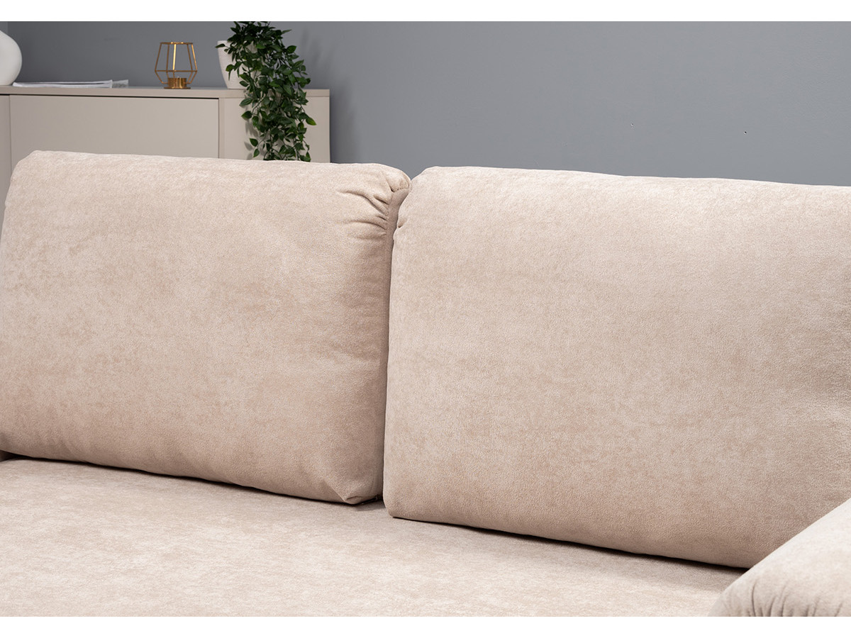 Декоративные утяжки и складки на подлокотниках придают дивану неповторимый шарм, который станет изюминкой любого интерьера — от классического до современного. Приспинные подушки со сборкой в верхней части.