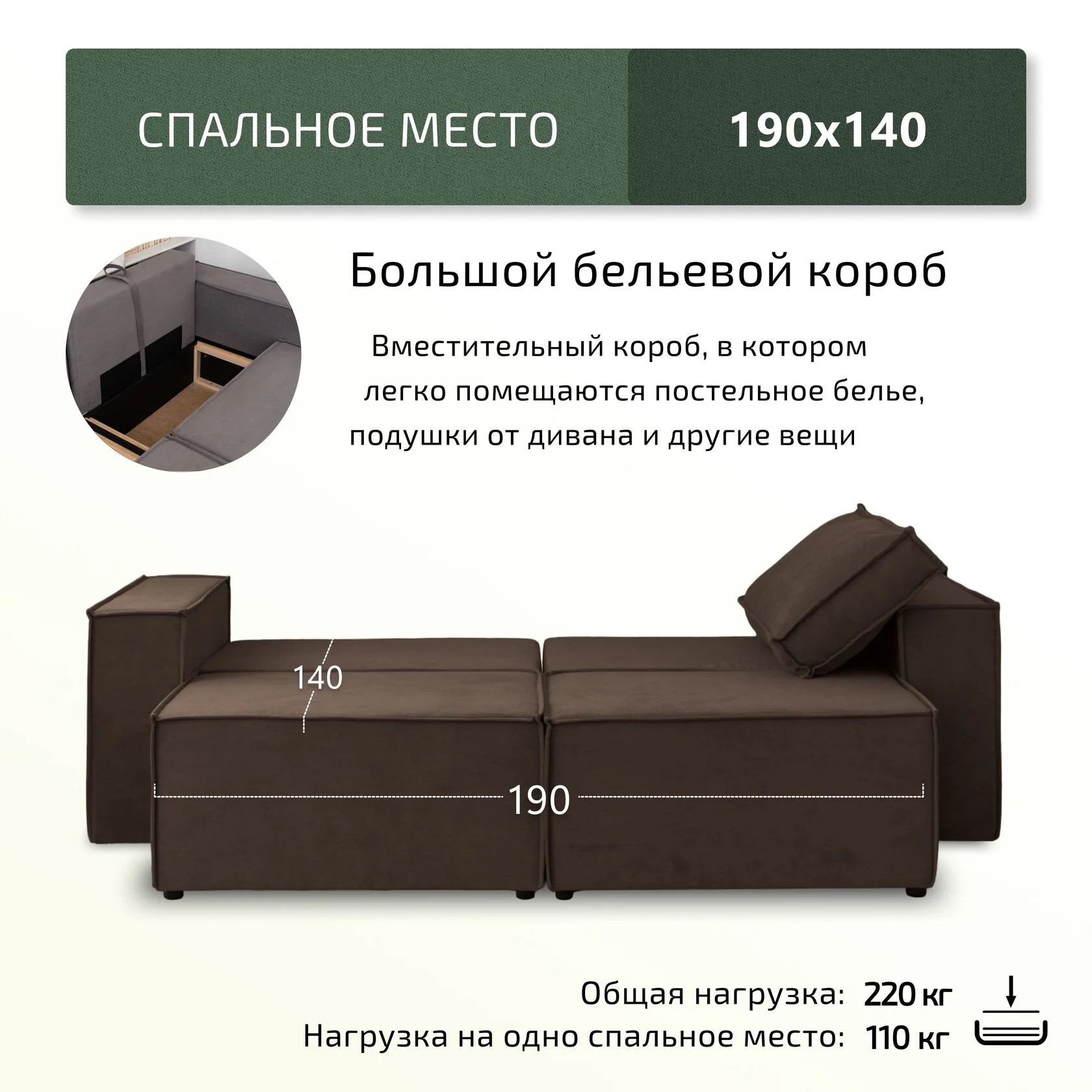 Спальное место, мм: 1400х1900 мм