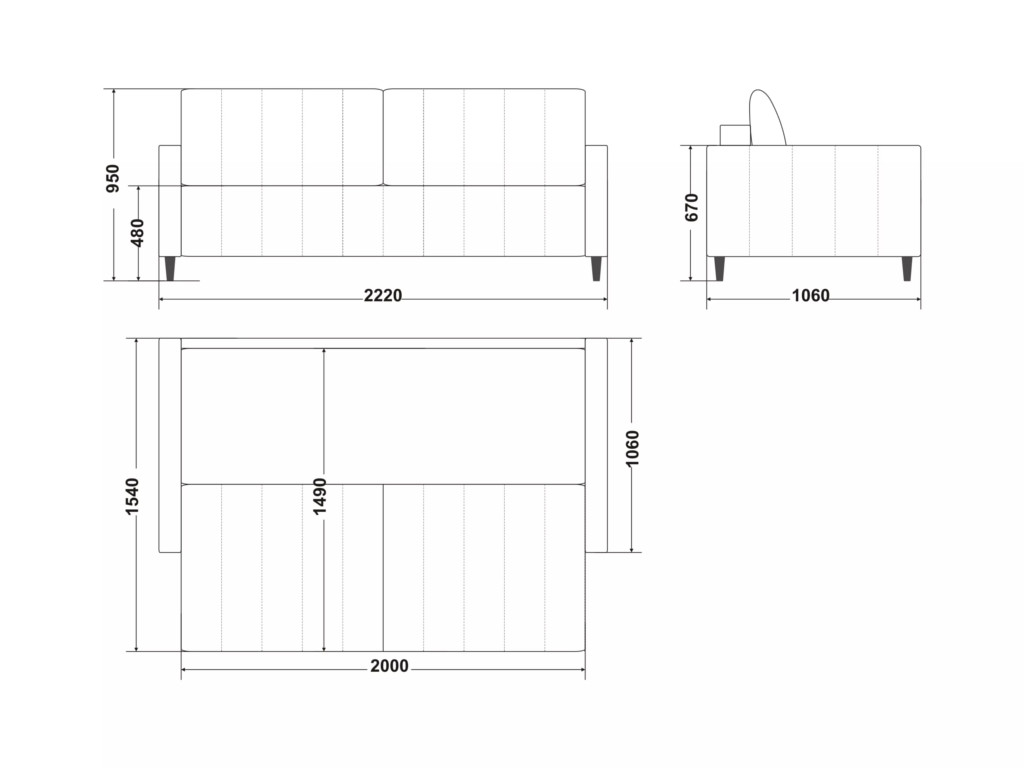 Каркас: выполнен из древесины хвойных пород, фанеры лиственных пород, лам. ДСП и лам. ДВП. В диване короб из ЛДСП. Опоры высота 120 мм