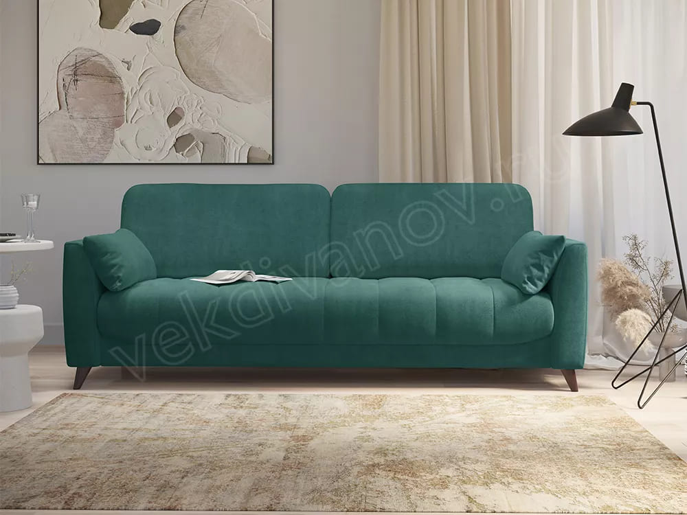Каркас: выполнен из древесины хвойных пород, фанеры лиственных пород, лам. ДСП и лам. ДВП. В диване короб из ЛДСП, опоры пластик под конус высота 120 мм