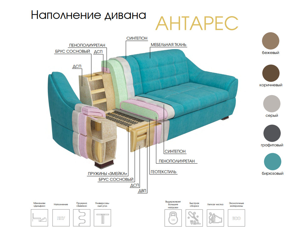 Наполение: ППУ, пружина "Змейка"