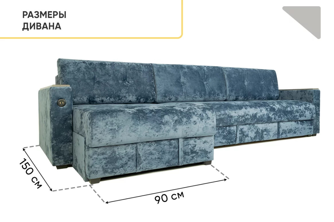 - Диван eгловой Тургояк c USB розеткой Темно-синий Ocean 978